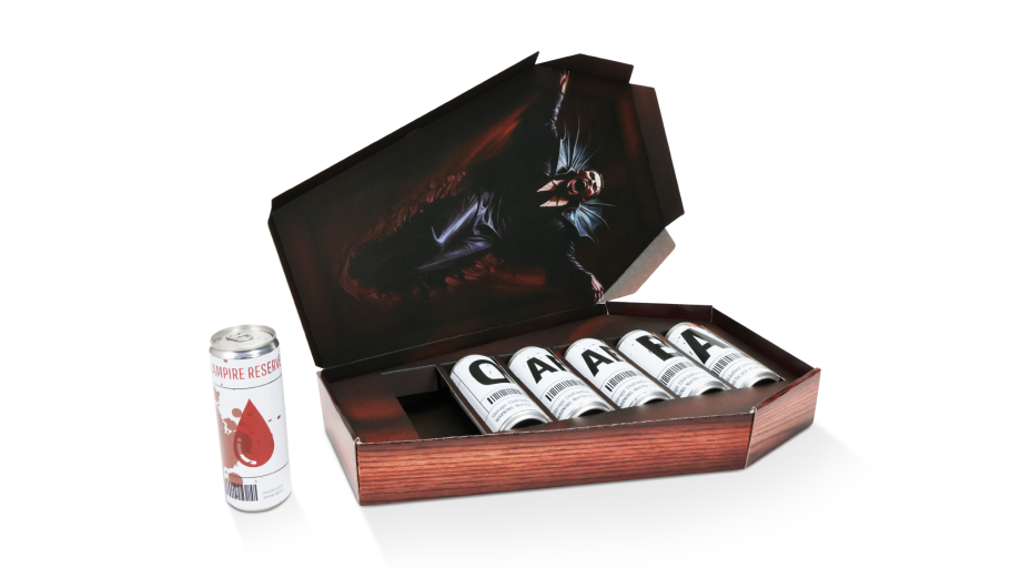 This project brought a Halloween twist to product packaging. I created a haunted house display, a coffin PR kit, and realistic blood bank–inspired labels for slim cans. Each design tied together a spooky theme with modern detail, resulting in a visually striking and cohesive collection.