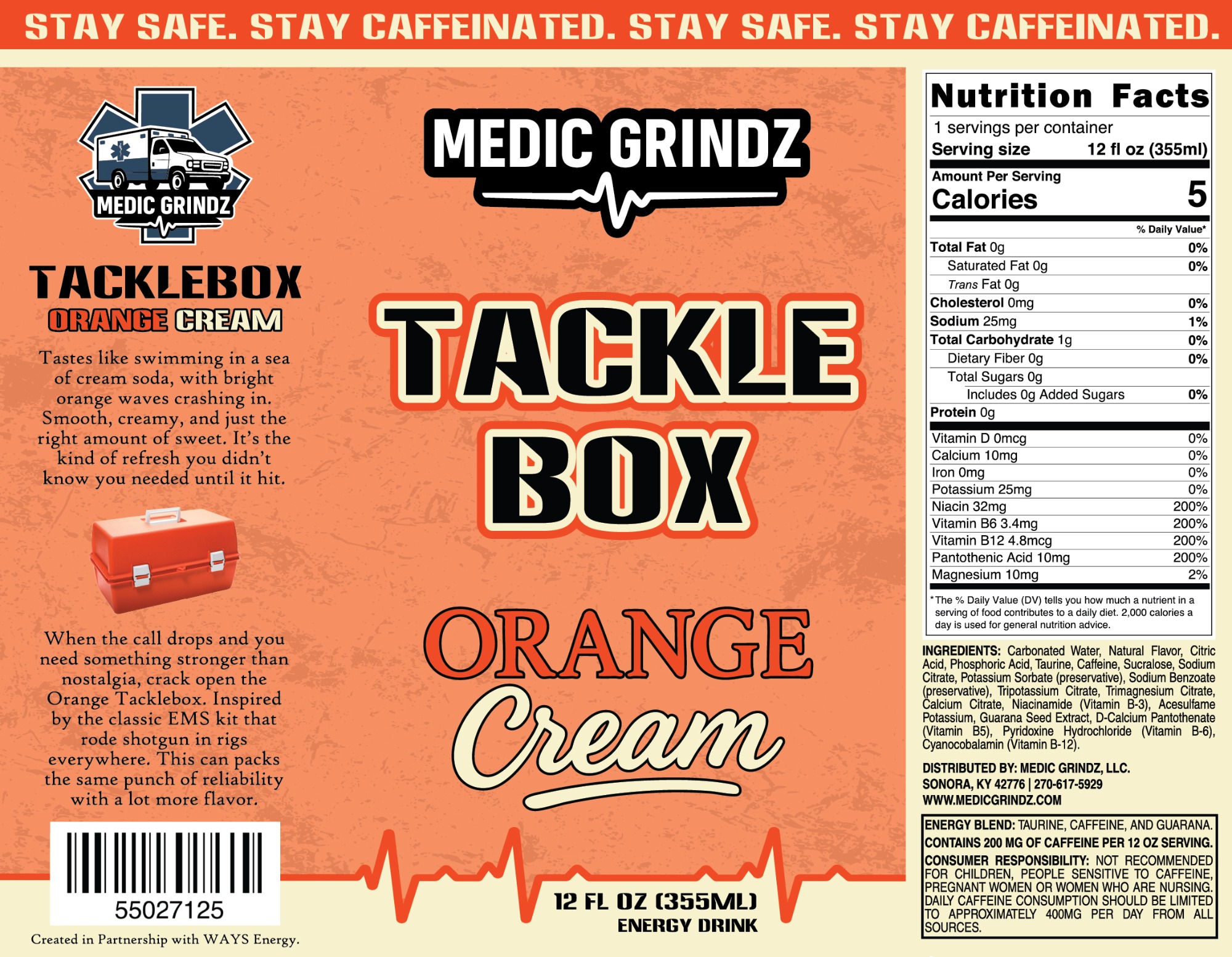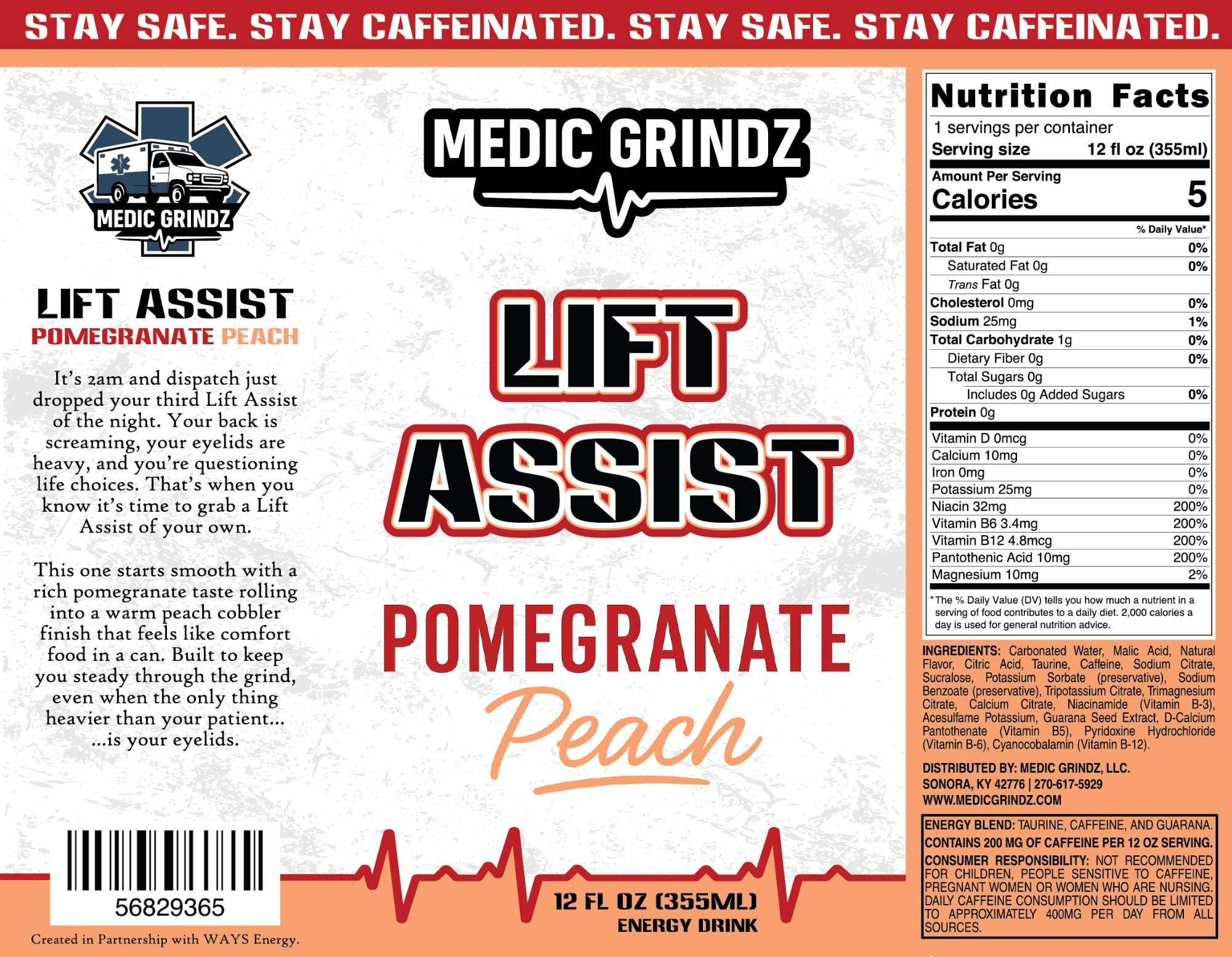 This project for Medic Grindz features a full label design set for 3 new energy drink flavors: Cherry Limeade, Orange Cream, and Pomegranate Peach. Each design captures the flavor’s unique vibe and includes Nutrition Facts, ingredients, caffeine content, and warning details formatted to meet FDA standards. This was such a fun project to bring to life.