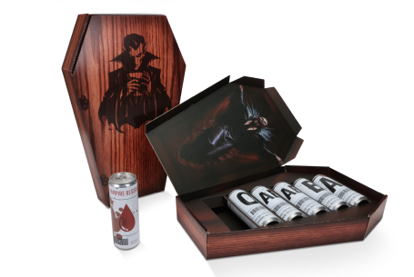 This project brought a Halloween twist to product packaging. I created a haunted house display, a coffin PR kit, and realistic blood bank–inspired labels for slim cans. Each design tied together a spooky theme with modern detail, resulting in a visually striking and cohesive collection.